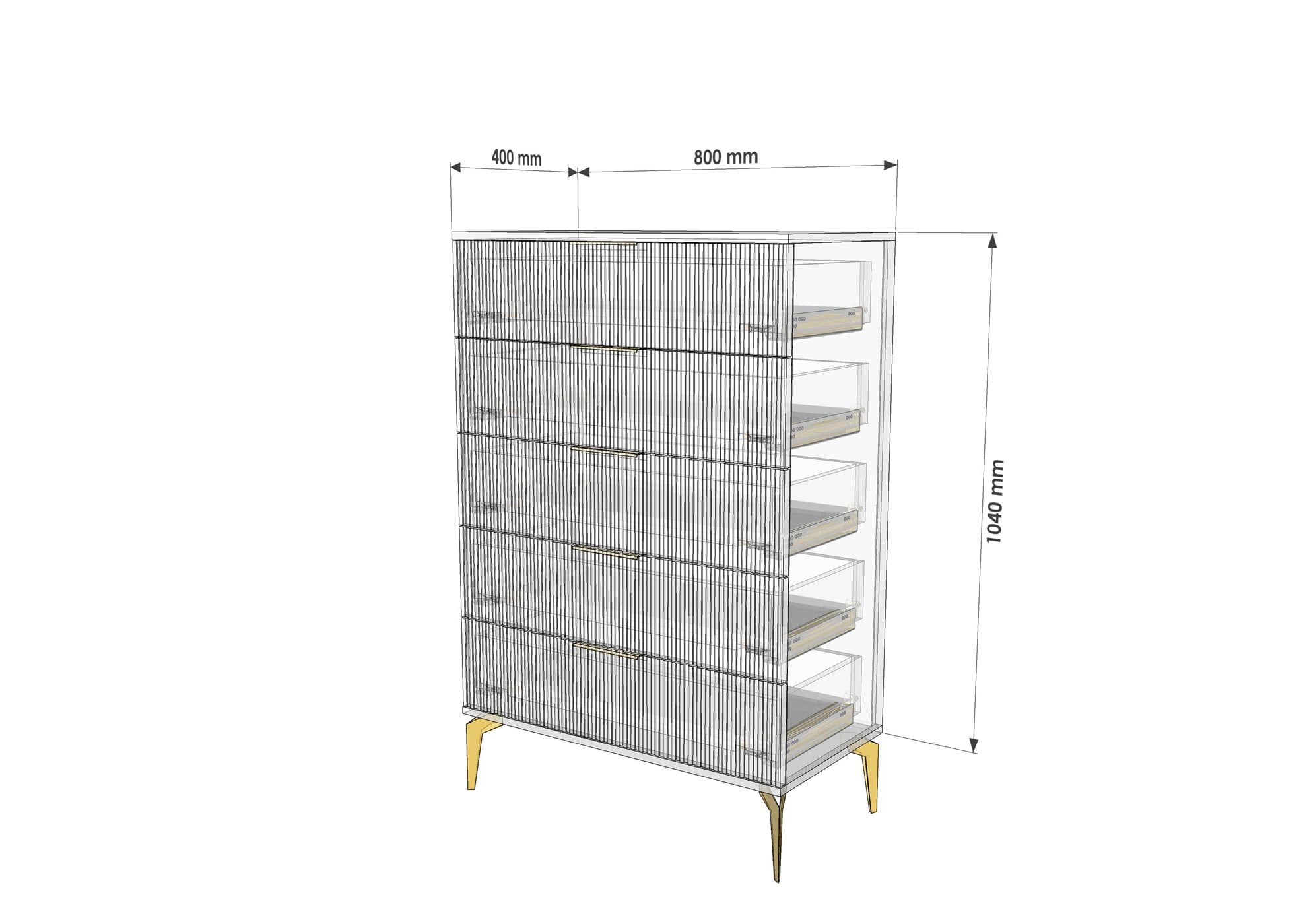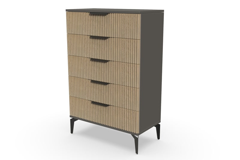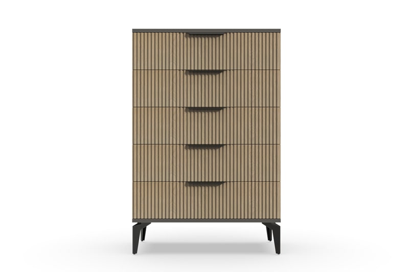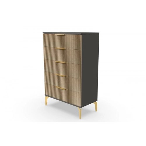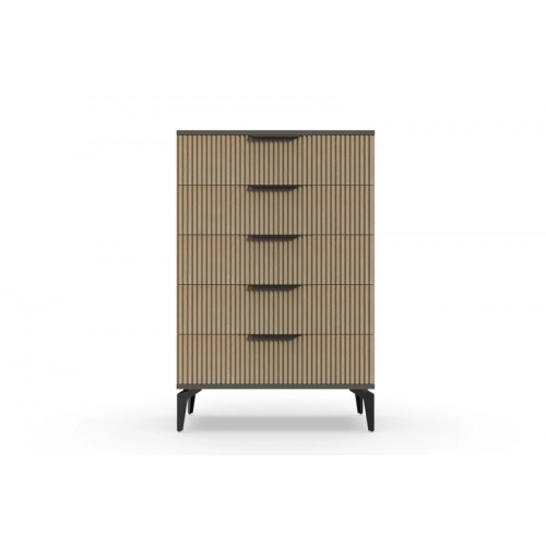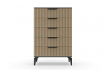 В итоге, комод высокий "Рейн" от фабрики Geona - это функциональное и элегантное решение для вашей спальни или гостиной. Он имеет несколько выдвижных ящиков разного размера, а его рифлёные поверхности придают ему современный и стильный вид. Комод выполнен из качественных материалов и производится с применением передовых технологий, что гарантирует его долговечность и надежность.