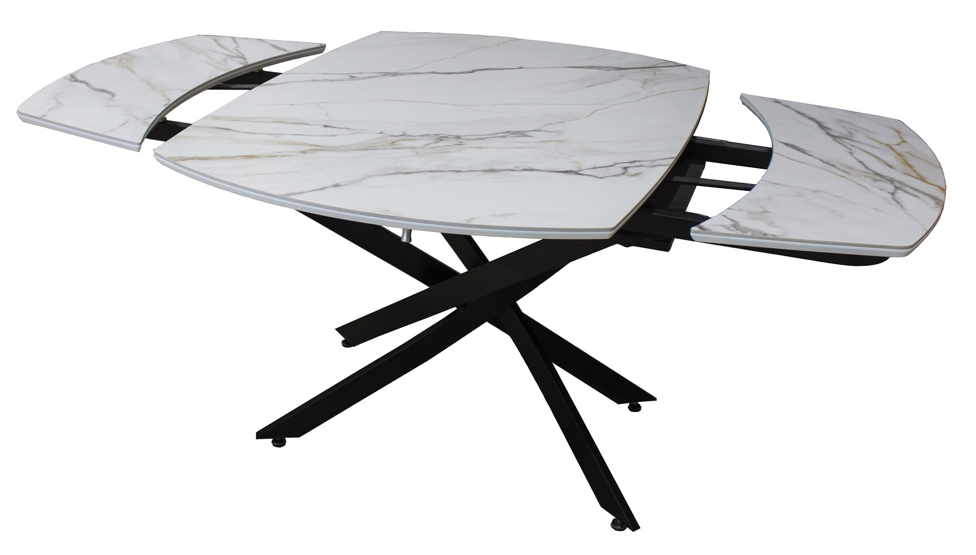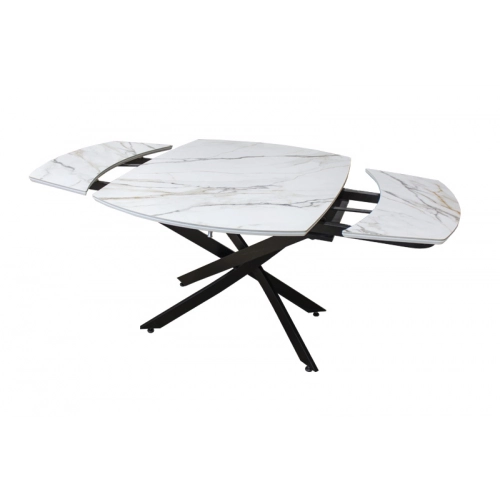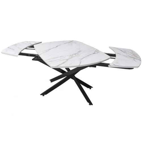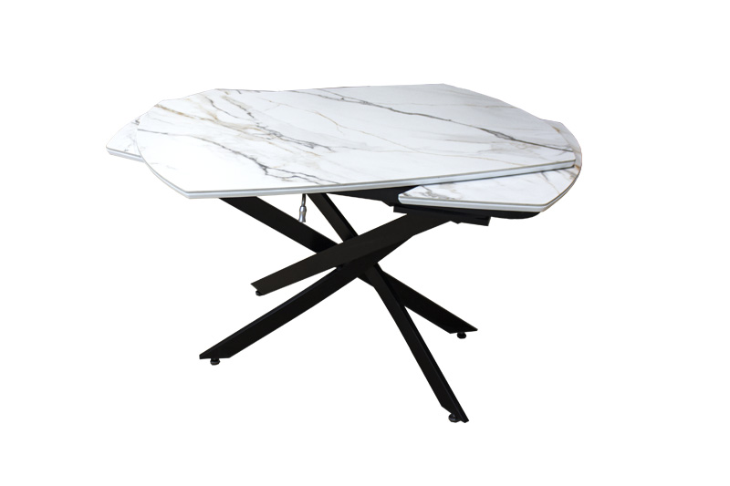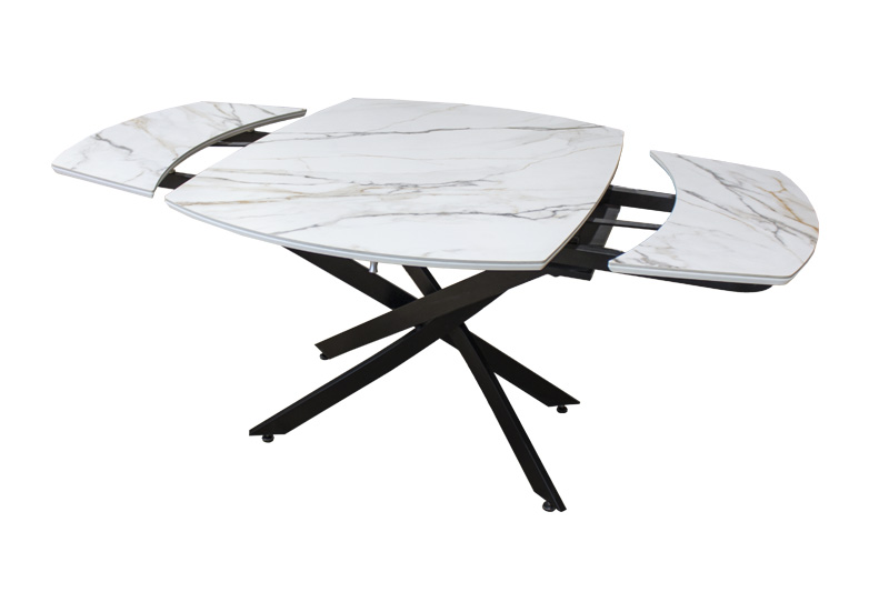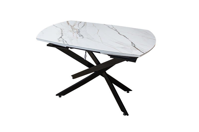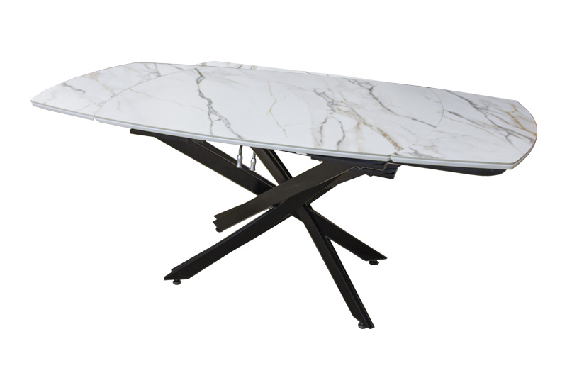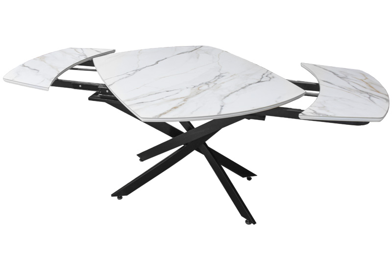 Раздвижной стол Денвер - очень удобен и отлично впишется в любой дизайн. Стол Денвер имеет двухстороннюю торцевую систему раскладывания, две независимые вставки по 30 см, что позволяет увеличить длину столешницы на 60 см и уместить всех гостей за праздничным ужином. Керамическая столешница не царапается, не впитывает жидкость, легко моется, не боится перепадов температур. Закругленные углы основной столешницы и вставок безопасны в эксплуатации. Дополняет изысканный дизайн стола основание и база, выполненные в черном цвете металла.