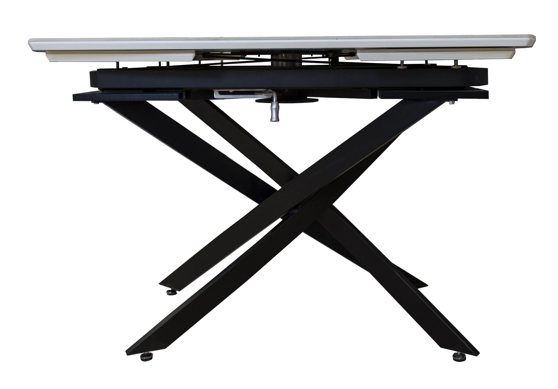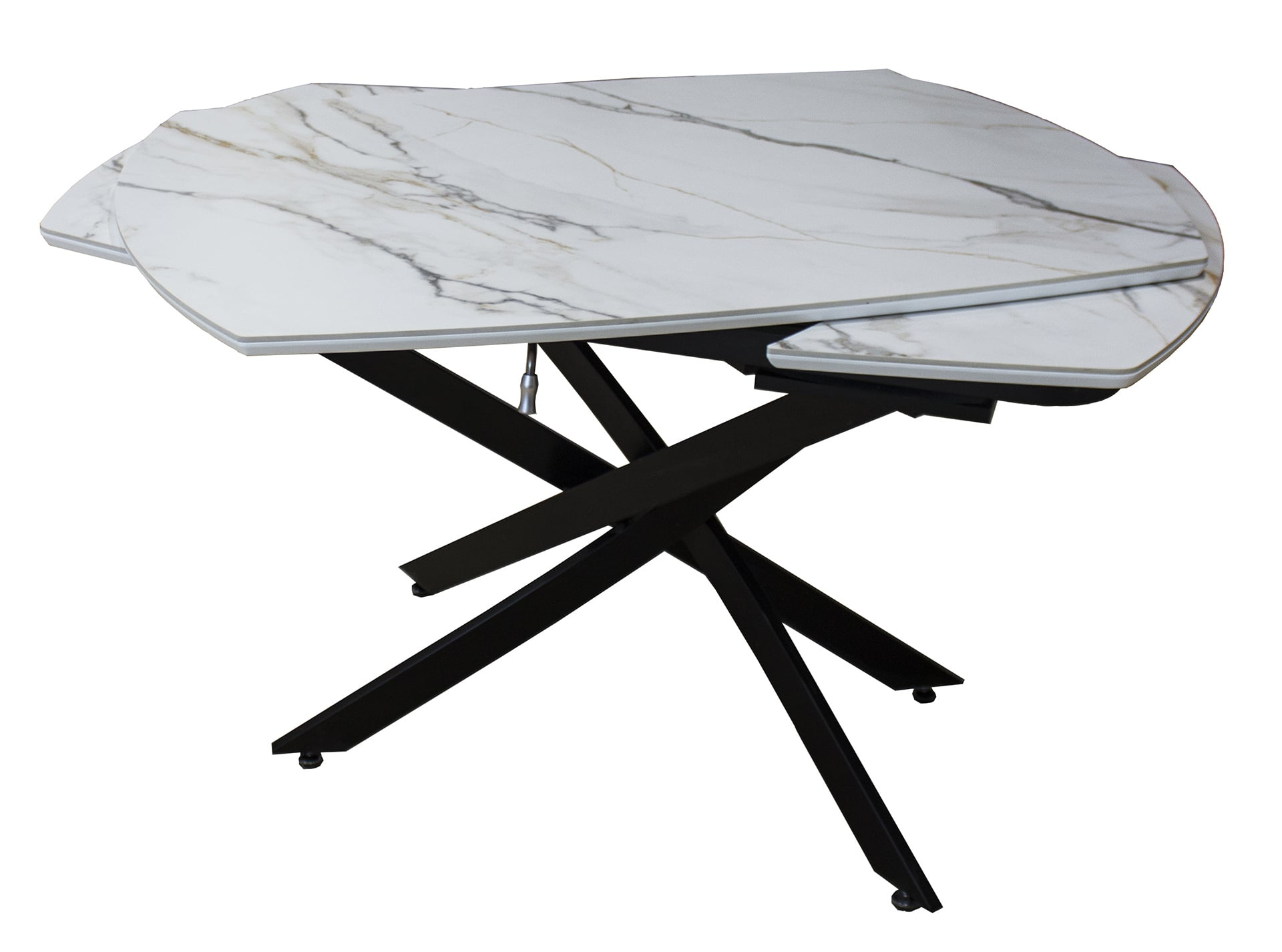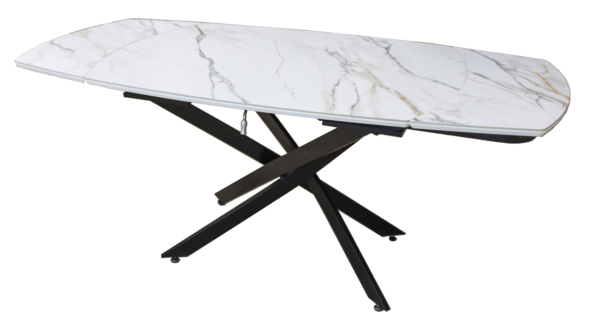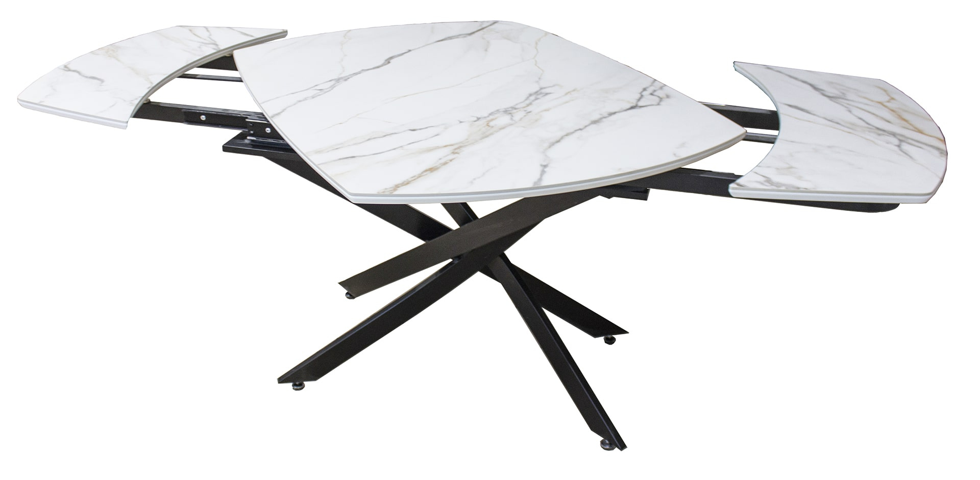 Раздвижной стол Денвер - очень удобен и отлично впишется в любой дизайн. Стол Денвер имеет двухстороннюю торцевую систему раскладывания, две независимые вставки по 30 см, что позволяет увеличить длину столешницы на 60 см и уместить всех гостей за праздничным ужином. Керамическая столешница не царапается, не впитывает жидкость, легко моется, не боится перепадов температур. Закругленные углы основной столешницы и вставок безопасны в эксплуатации. Дополняет изысканный дизайн стола основание и база, выполненные в черном цвете металла.