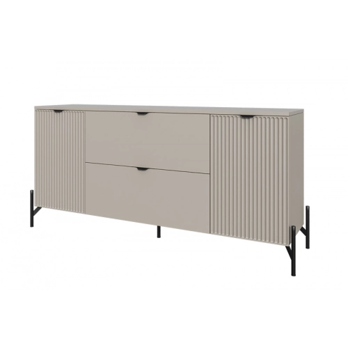 Гладкие поверхности в матовом исполнении подчеркивают сдержанную элегантность модели, а акценты в металлической отделке добавляют изысканности и визуальной легкости. Продуманная конструкция объединяет закрытые секции и выдвижные ящики, обеспечивая удобную организацию пространства без лишнего визуального шума.