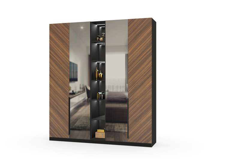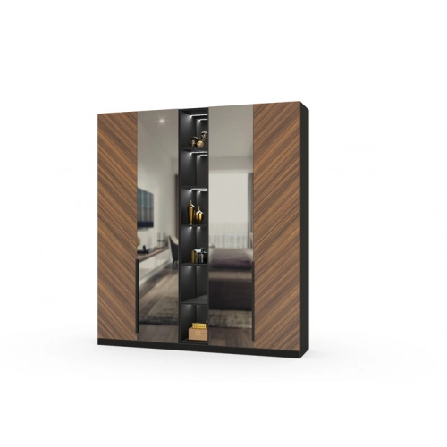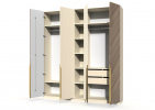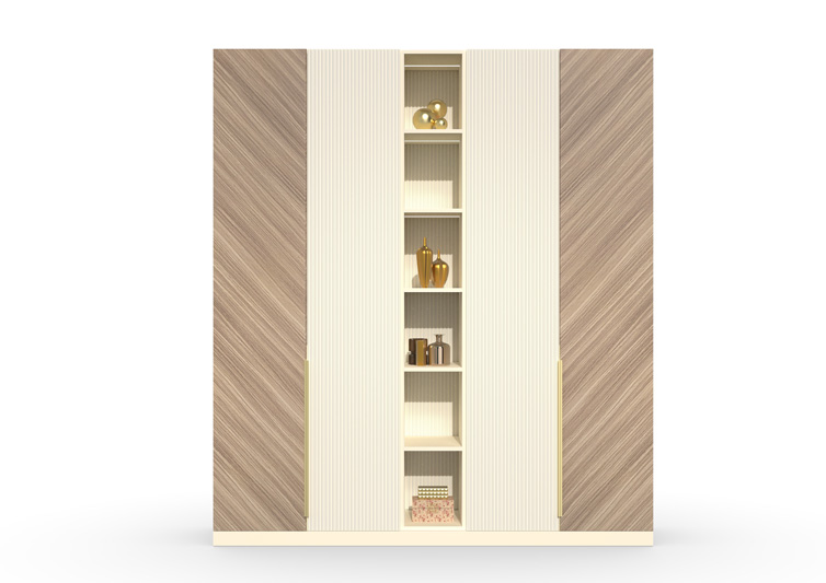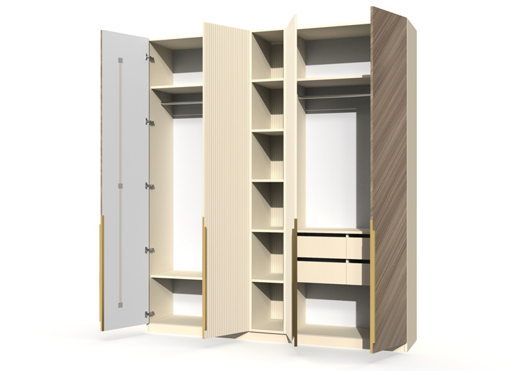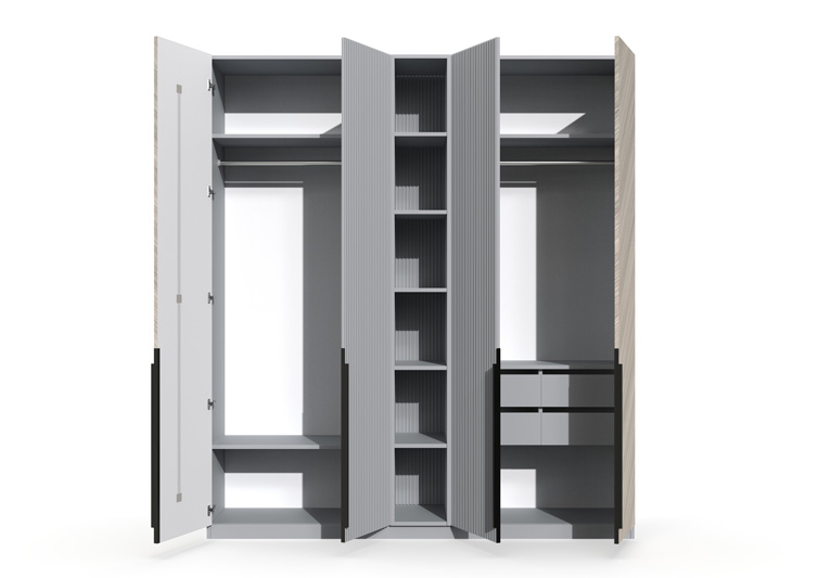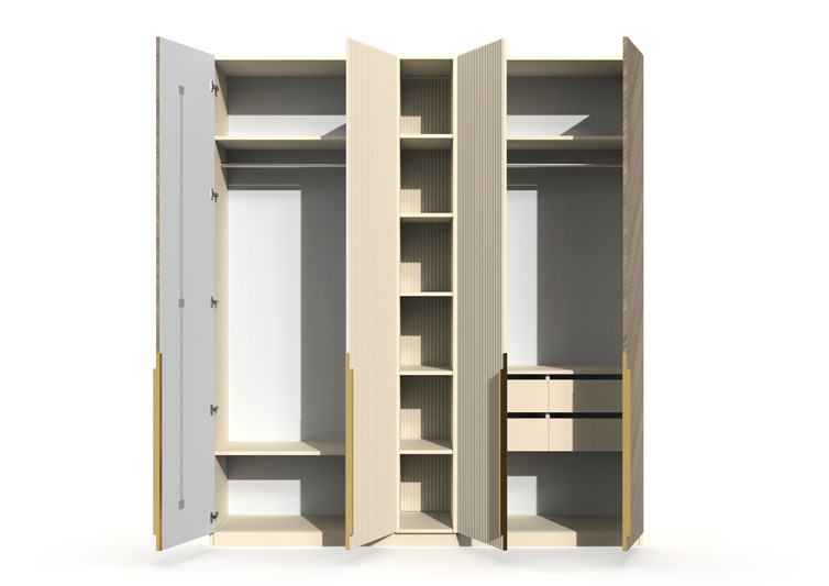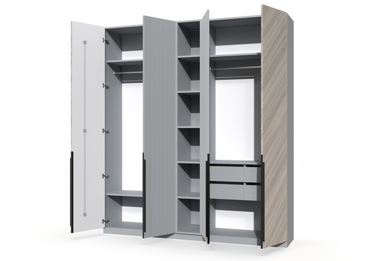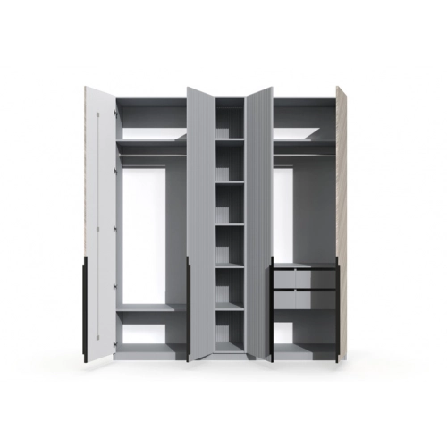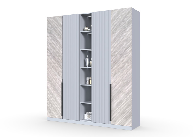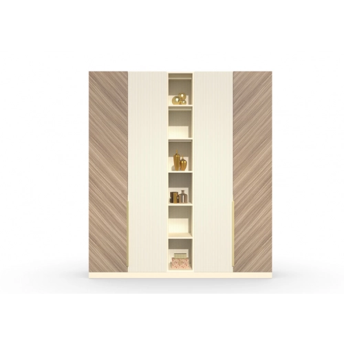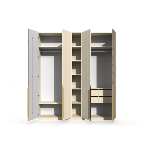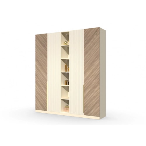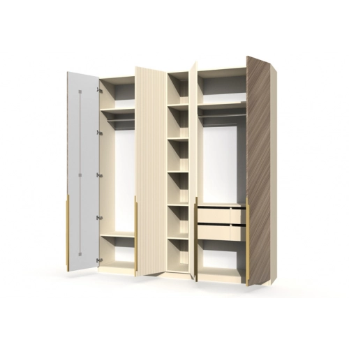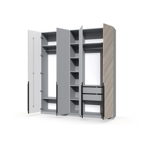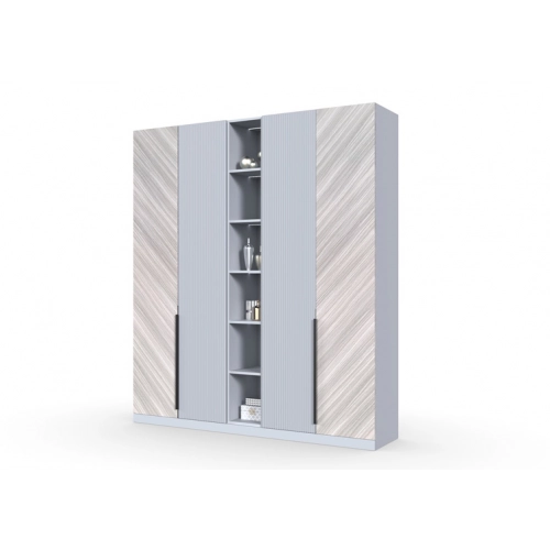 Шкаф 4-х створчатый Шале от фабрики Geona - это элегантное и практичное решение для хранения вещей в вашей спальне или гостиной. Он оснащен выдвижными ящиками и имеет эффектную отделку в диагональном направлении текстуры, что придает ему изысканный и стильный вид.